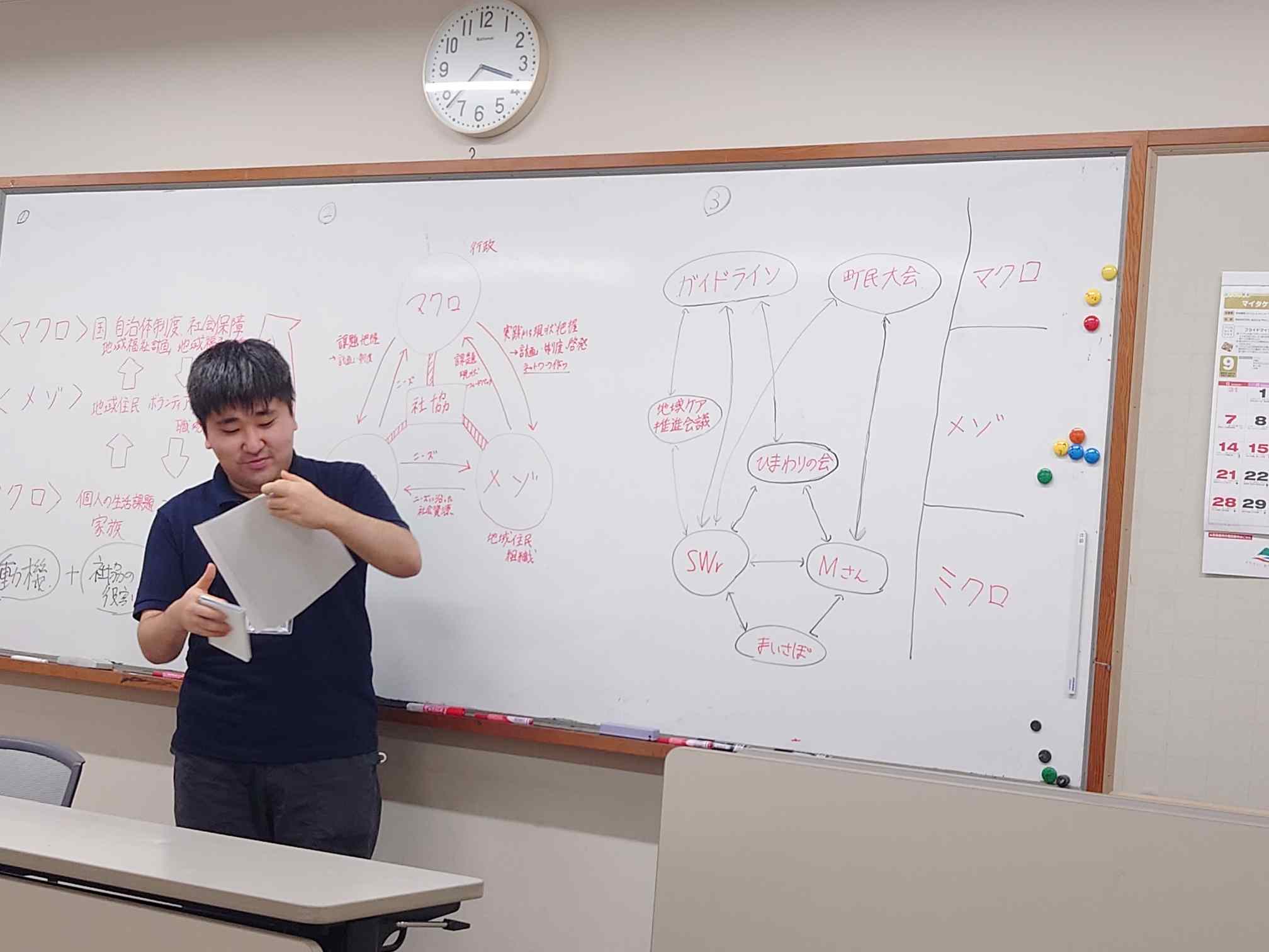 ☆プレゼンテーションのまとめ方(東御市社協の実践活動について、個人・世帯やグループ・地域や制度の3つの整理に落とし込みながら、社会福祉協会議の機能や意義についてまとめてもらう)