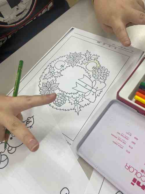当日は、スタッフを含め4名で季節の塗り絵を楽しみました。参加者の方はクリスマスリースの絵柄を選び、集中しながら丁寧に色を重ねていました。「楽しい」「時間が終わってしまうのが残念」と笑顔で話される姿が印象的でした。
